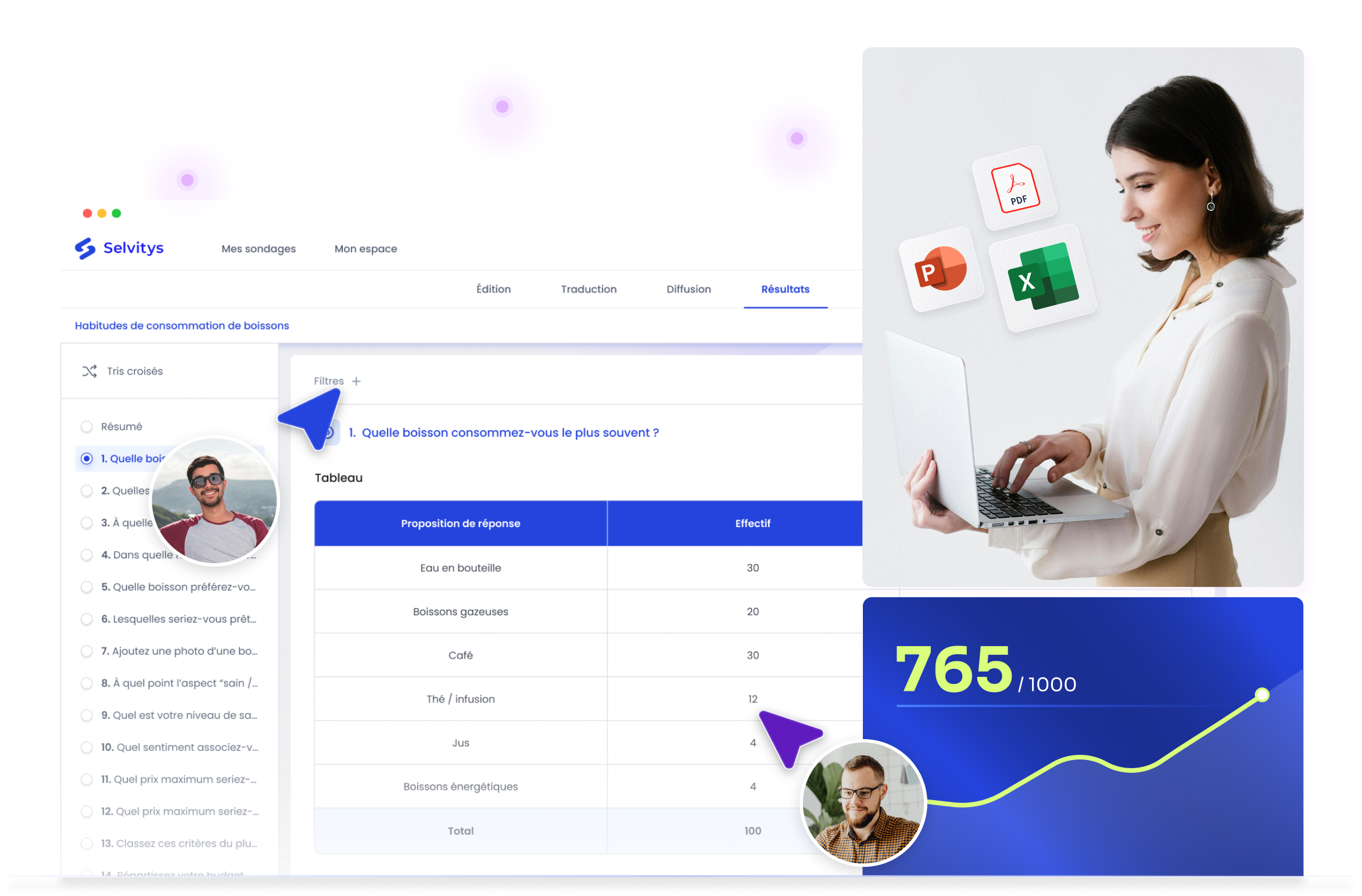 Exploitez vos données immédiatement ou faites-les interpréter par nos experts. Exportez facilement vos rapports au format Excel ou PDF.